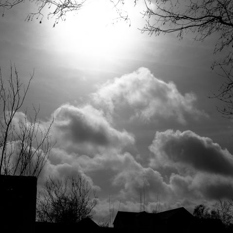Das Wetter spricht mir aus der Seele. Wolken rauschen vorbei und der Himmel ist in stetem Wandel. Nüchtern und in Schwarz/Weiß betrachtet ein wunderschöner Anblick. Wärmende Sonne zaubert Muster aus Licht auf die Landschaft, jede Sekunde verändert durch Wind und Wolken. Stetige Veränderung und doch Konstanten. Auf in den nächsten stürmischen Schritt des Lebens.